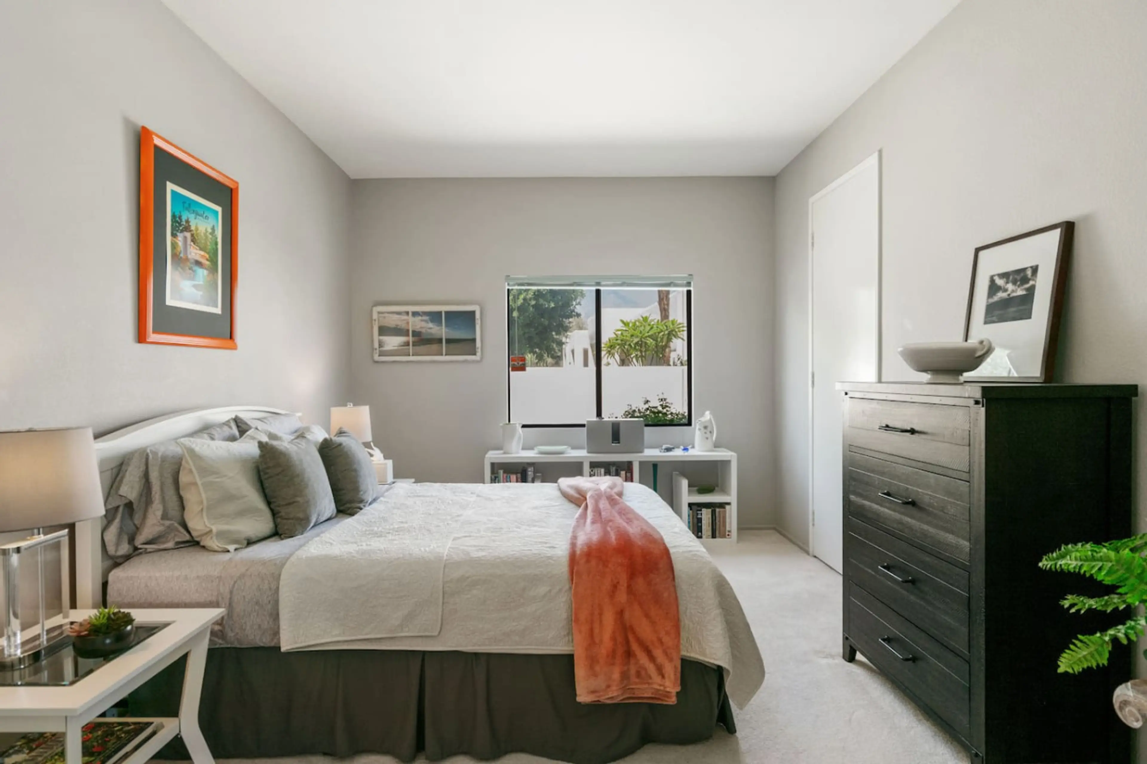 Welcome to our peaceful oasis in the sought-after Desert Princess Country Club. Our spacious & airy 2 bed/2 bath home offers indoor/outdoor living at its finest. This corner unit has vaulted ceilings, large veranda, views of the lake/golf course, and easy access to the pool/spa. The community offers...